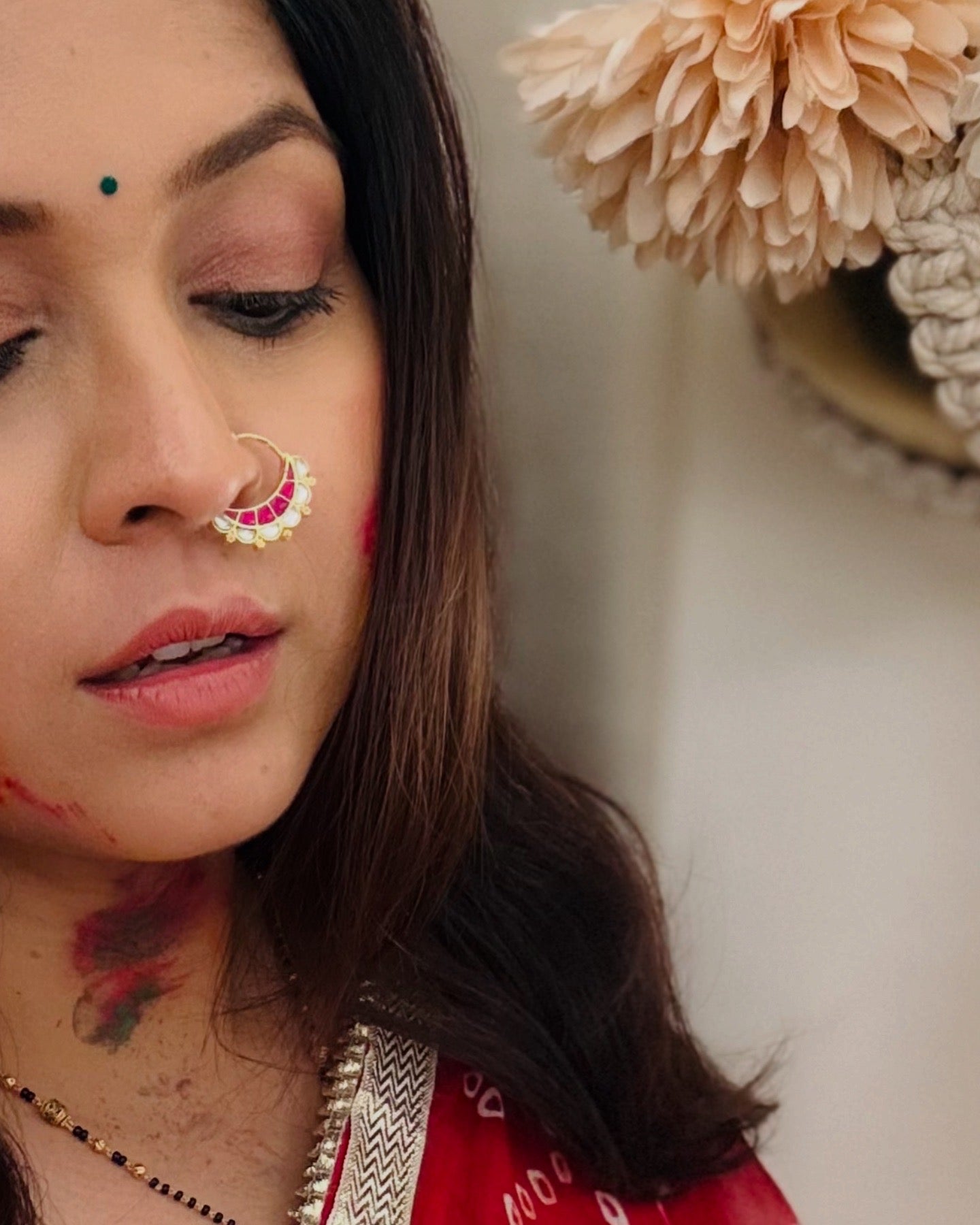 This Gulabi Chand Kundan Nath is a stunning piece of jewelry that showcases intricate designs and beautiful Kundan work. Crafted with precision and traditional techniques, this nath is a true masterpiece. Experience the elegance and grace it adds to your attire. Makes for a perfect accessory for weddings, festive occasions, and cultural events.