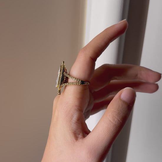 The Ishq Kundan Ring is a captivating blend of tradition and elegance. Crafted with intricate Kundan work and adorned with an oxidised gold finish, this adjustable ring radiates vintage charm. Its versatile design makes it perfect for both ethnic and contemporary looks, adding a regal touch to your ensemble.