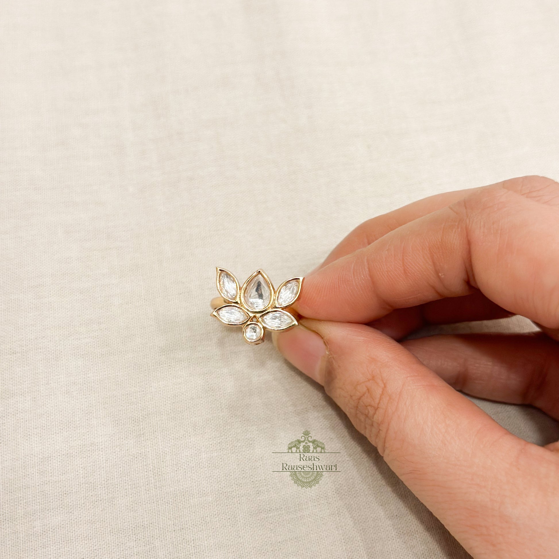 Made with precision and care, the Kamal Kundan Ring is a Kundan masterpiece. The elegant design features an adjustable band for a perfect fit. Own a piece of timeless beauty with this exquisite ring, crafted to perfection.