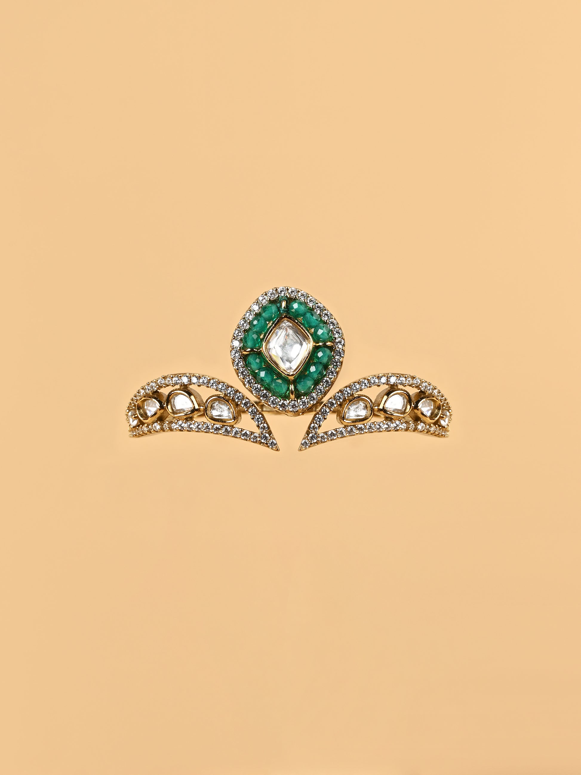 Handcrafted by skilled Indian artisans, this ring carries the aura of royalty, making it perfect for both festive grandeur and contemporary chic.